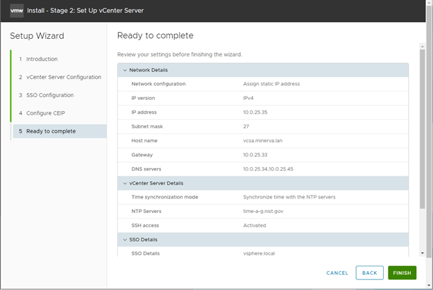 Also, it is always a good idea to enable SSH access to the VCSA. Let’s click Next.