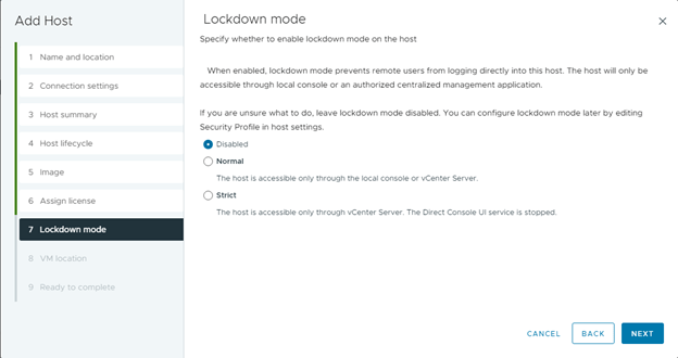 Let’s change the settings for both the ESXi hosts to match our sheet.