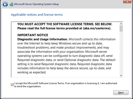 We are fine using an ‘Evaluation’ license as this is a lab setup. Let’s hit Next.