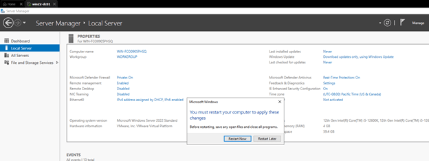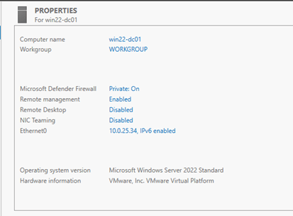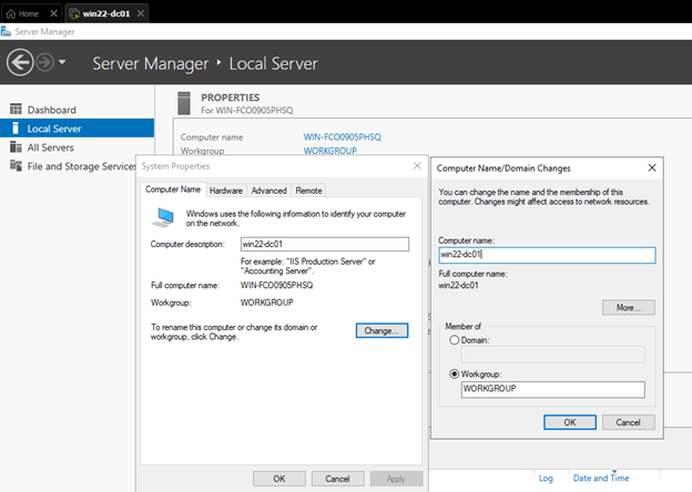 Let’s prep our Win2022 machine first to be able to serve as domain controller.