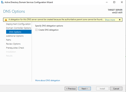 This step shows the various paths where all date related to DB, logs and SysVOL will be stored. No need to change anything here.