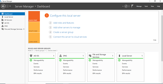 Post reboot, we should be able see AD and DNS roles added to the server.