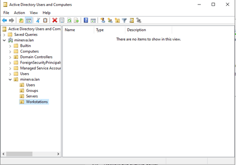 I will be following the same process to create additional OUs. The only difference is that these will be created under the newly-created OU ‘minerva.lan’.