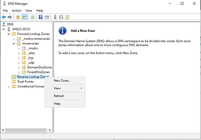 However, the ‘Reverse Lookup Zone’ is not created yet. This is equally important. Reverse lookup zones are used to verify that the IP address the source host is using is actually coming from the location where that IP address name is authoritative.