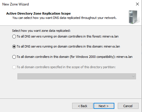 Select ‘All DNS Servers running on domain controllers in the domain: Minerva.lan’