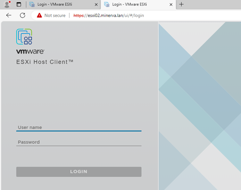 Let’s try to open the GUI of the hosts by browsing to https://esxi01.minerva.lan & https://esxi02.minerva.lan