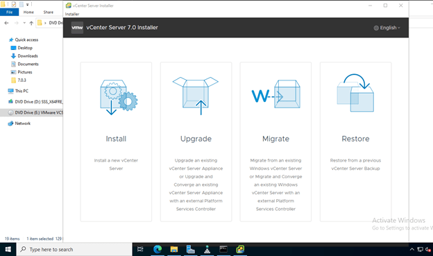 Double-click on the VCSA ISO file and this will virtually mount the media to the D: (CD/DVD Drive).