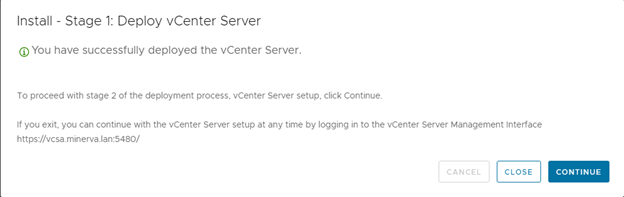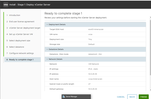 This will kick-off the Stage 1 deployment process of the VCSA appliance.